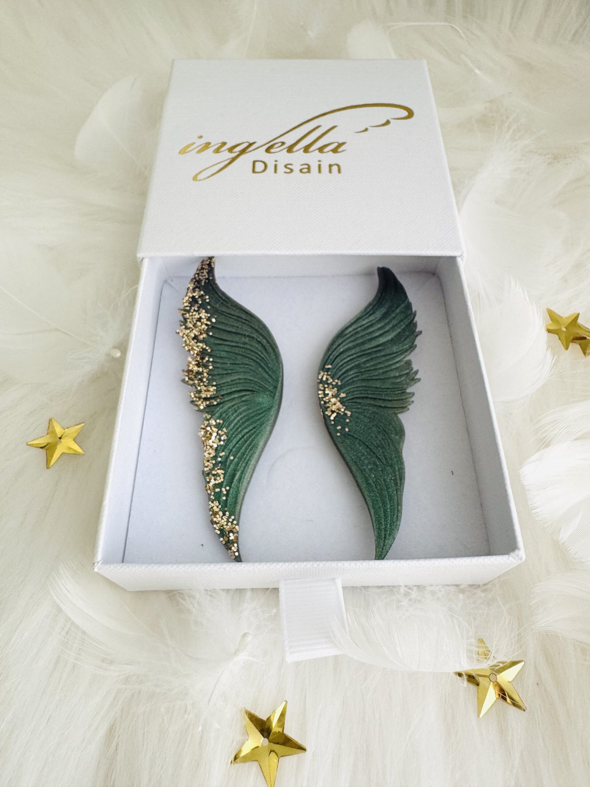 Tunne end kauni ja kaitstuna kõrvarõngastega Enesekindluse Tiivad. Need elegantsed kõrvarõngad on valmistatud rohelisest/hallist komposiitmaterjalist.Värv muutub valguse käes. Disainis peituv tiibade motiiv sümboliseerib kergust ja kaitset, kandes endas harmoonia ja enesekindluse sõnumit.