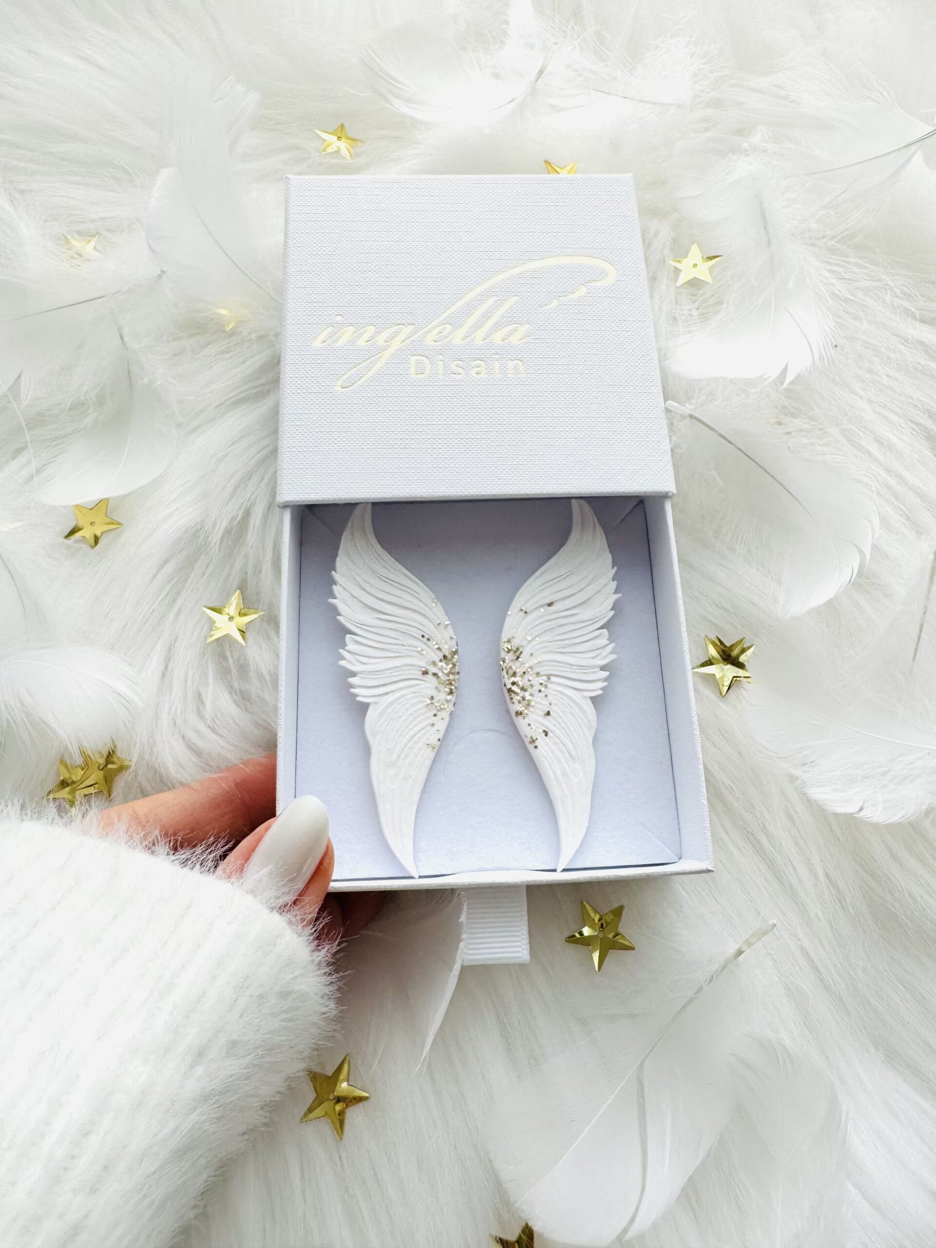 Kaitsvad inglitiiva kõrvarõngad (L-suur suurus, valge+kuldne sära)