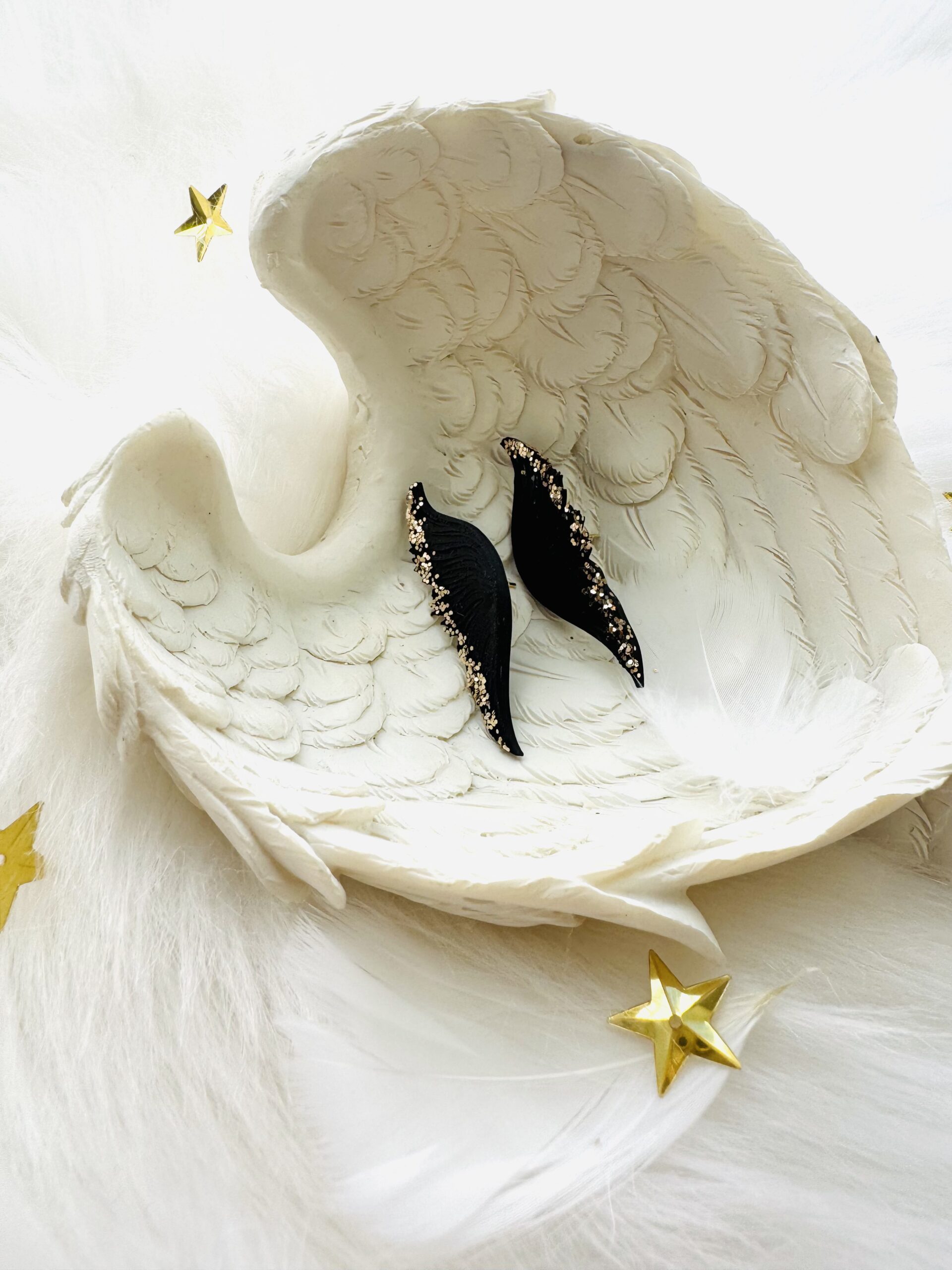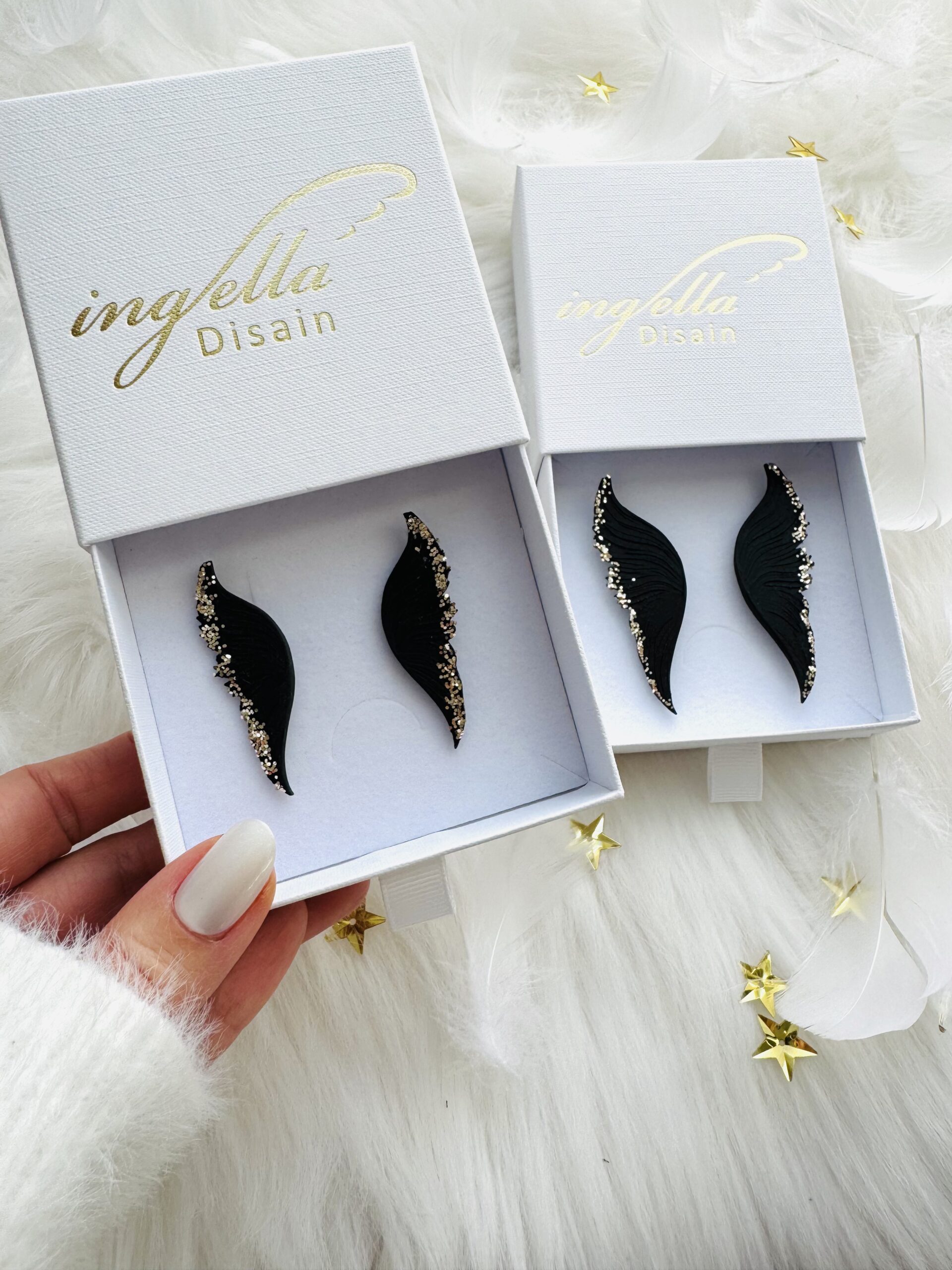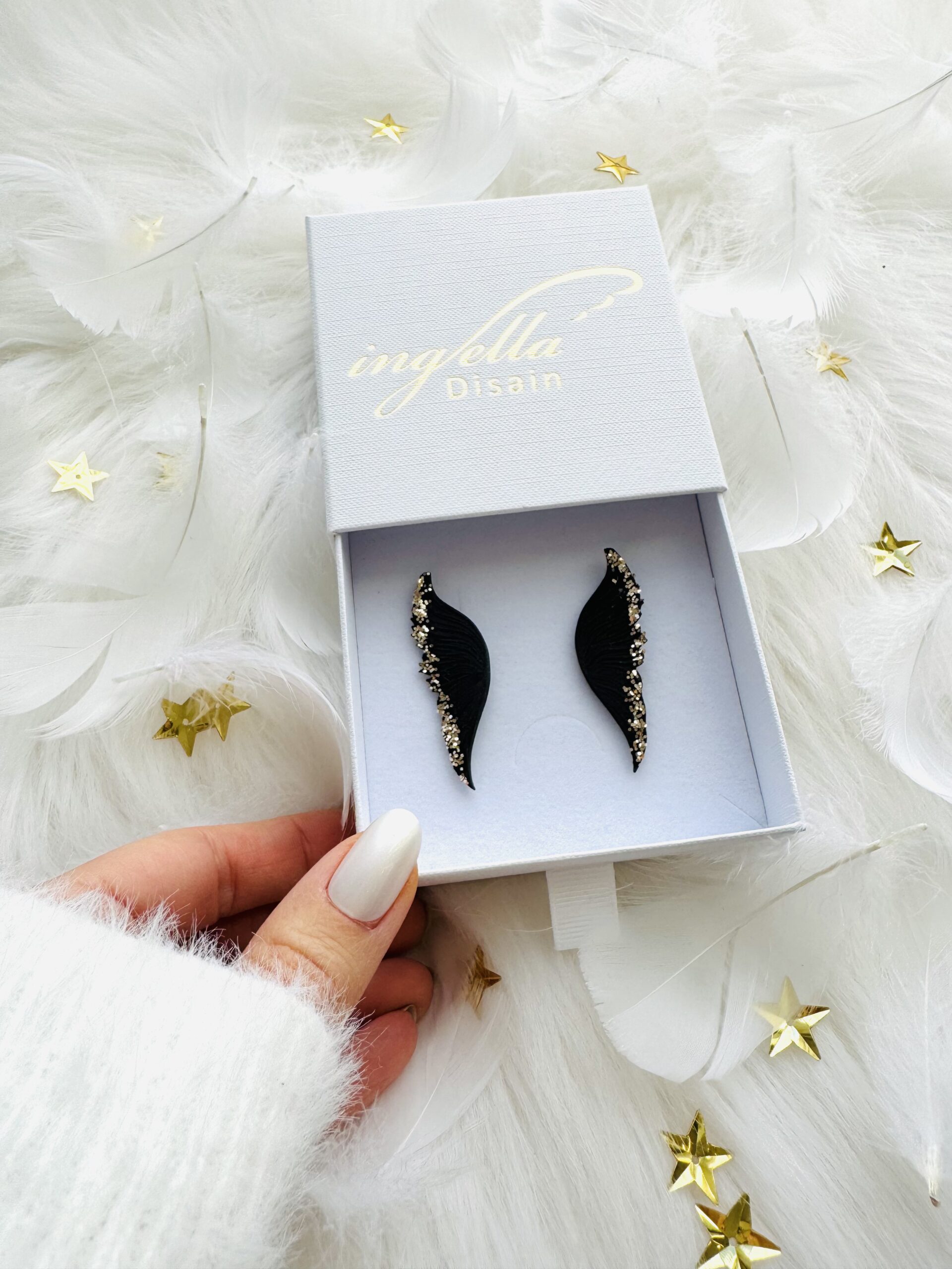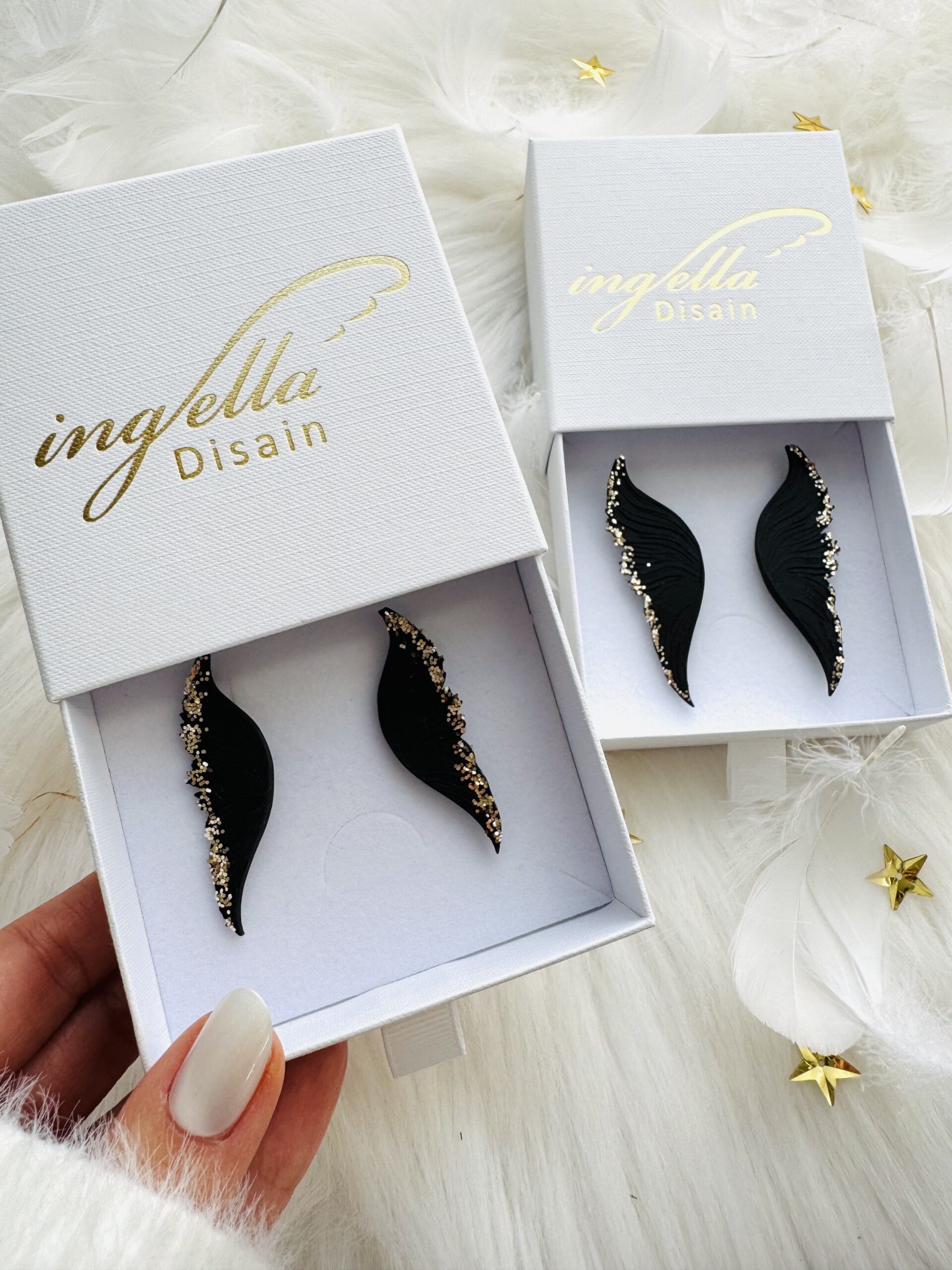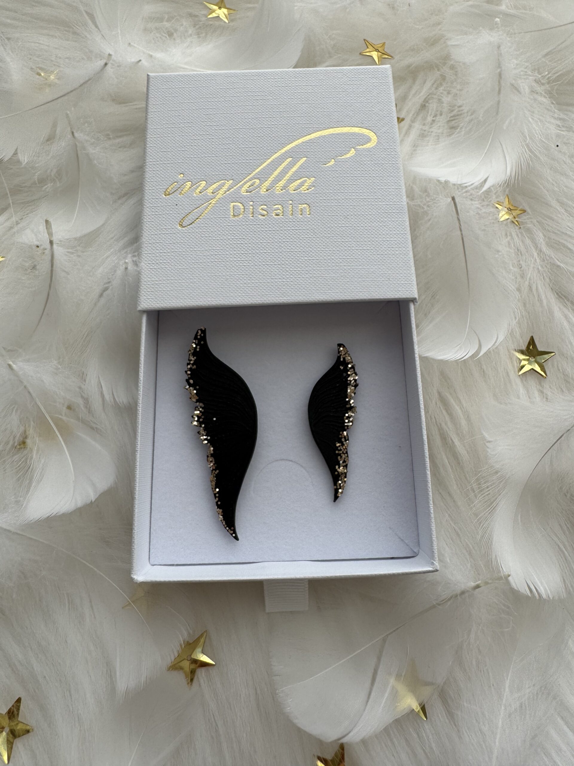Kaitsvad inglitiiva kõrvarõngad (S-väike suurus, mattmust+kuldne sära ääres)