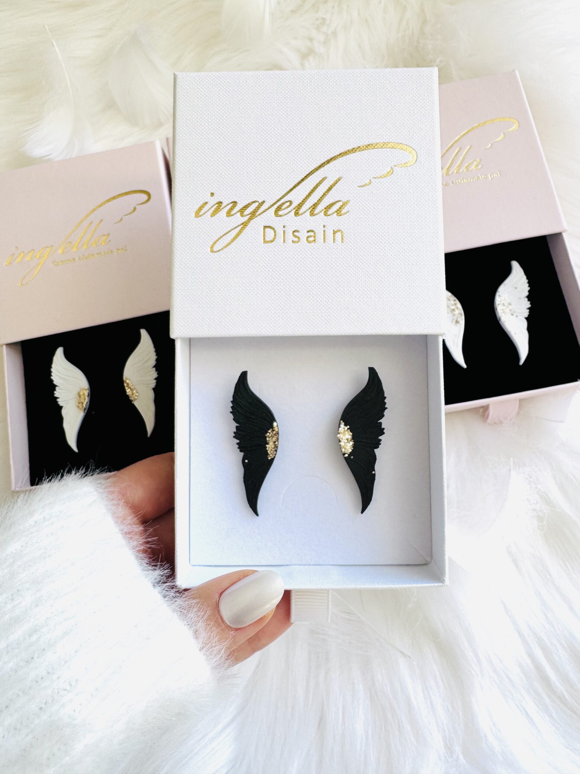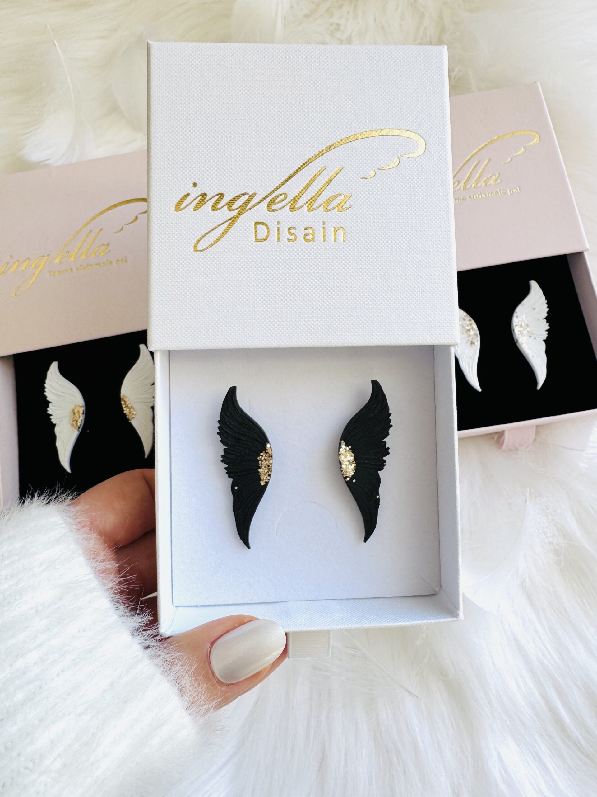 Kaitsvad inglitiiva kõrvarõngad (S-väike suurus, must, kuldse sädelusega)