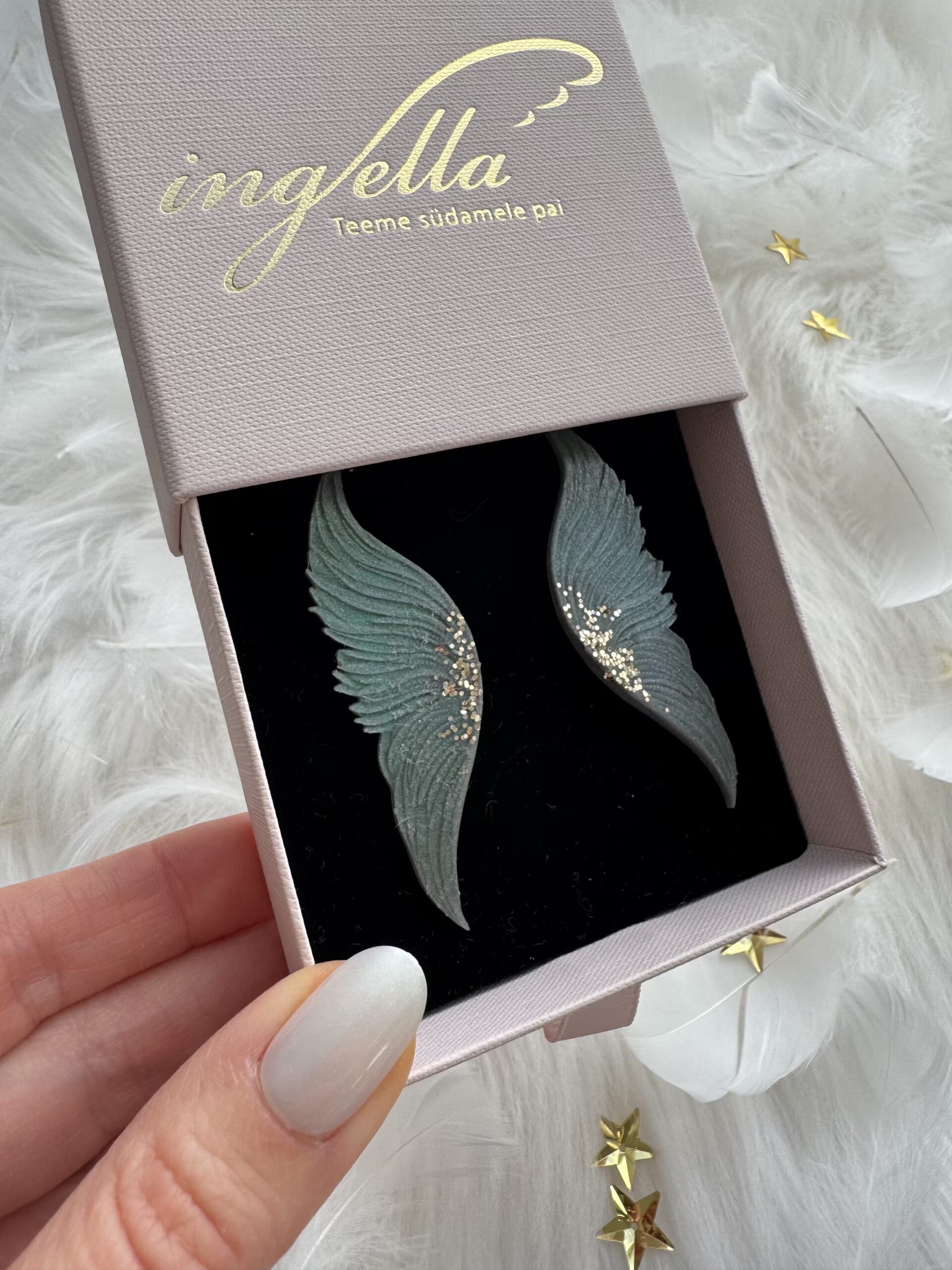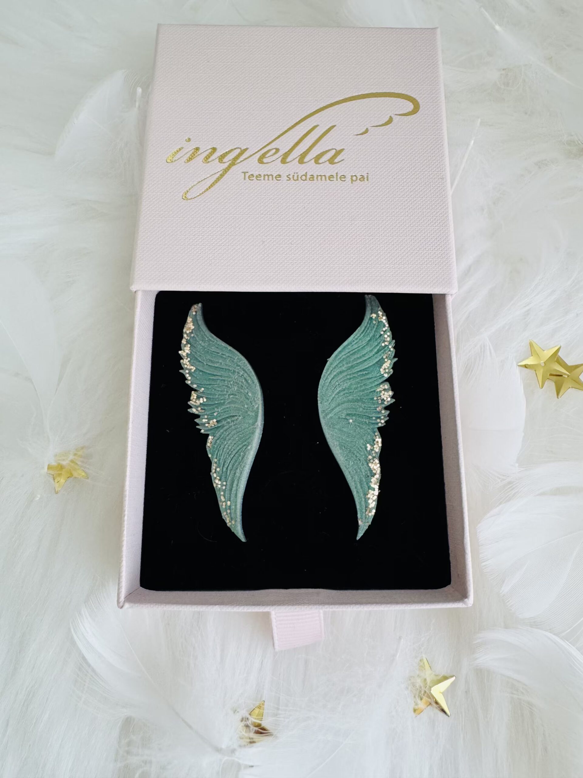 Kõrvarõngad kaitsvad inglitiivad (M-keskmine suurus, rohekashall+kuldne sädelus ääres)
