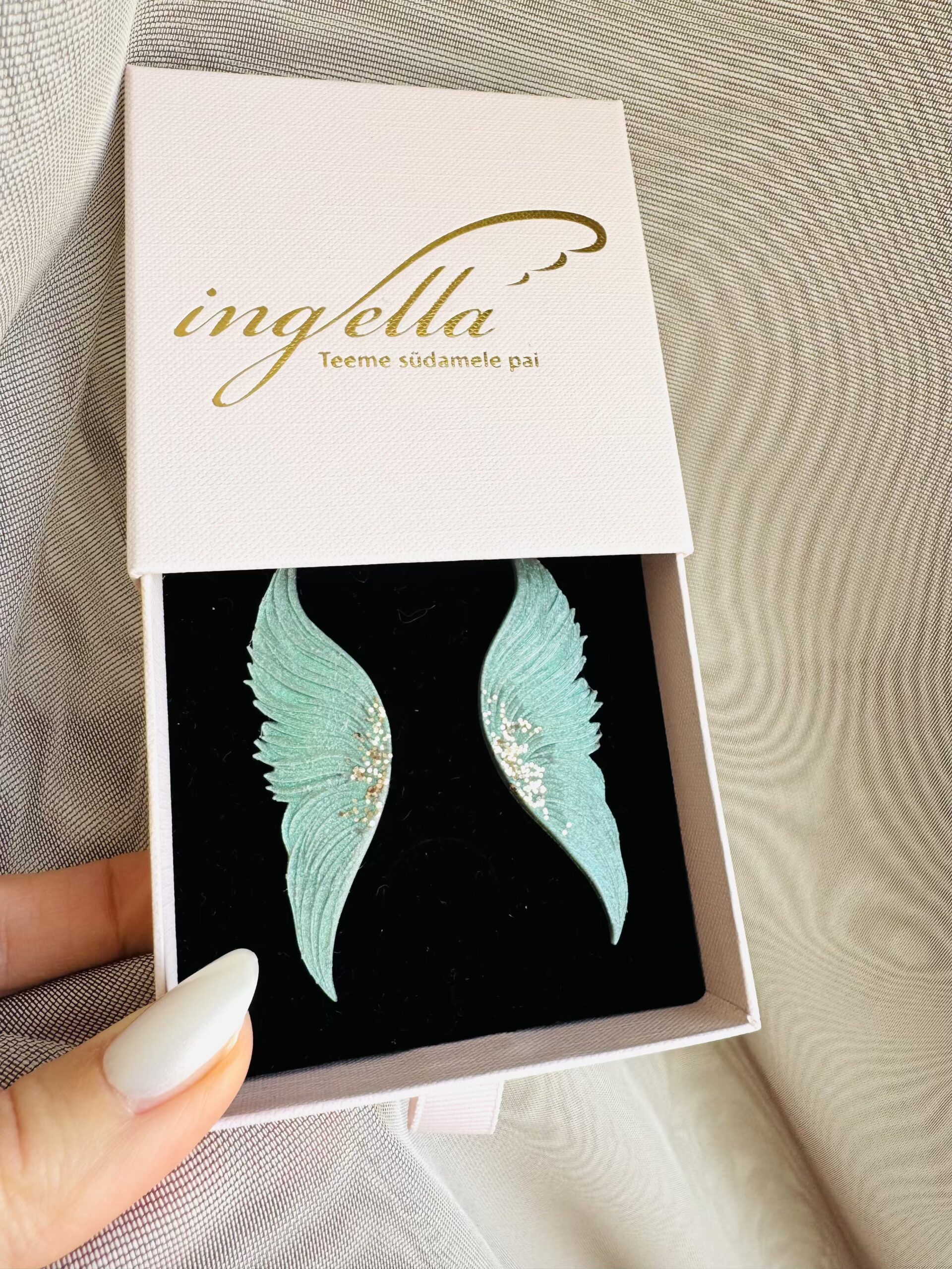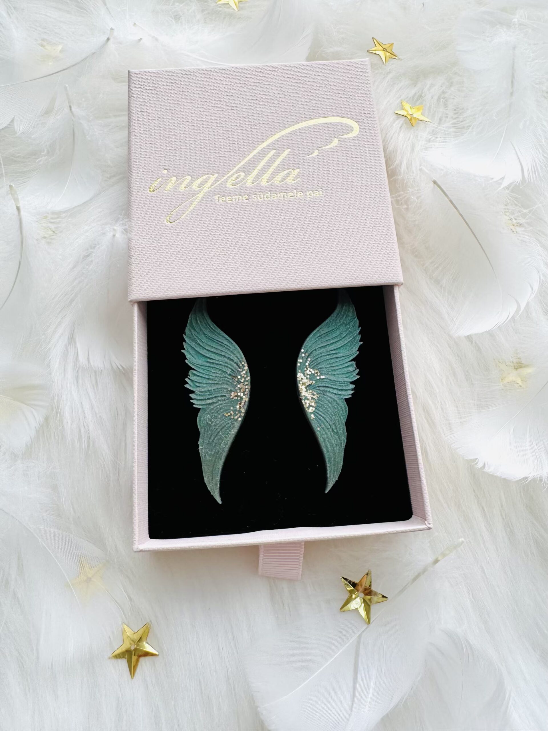 Kõrvarõngad kaitsvad inglitiivad (M-keskmine suurus, rohekashall+kuldne sädelusega)