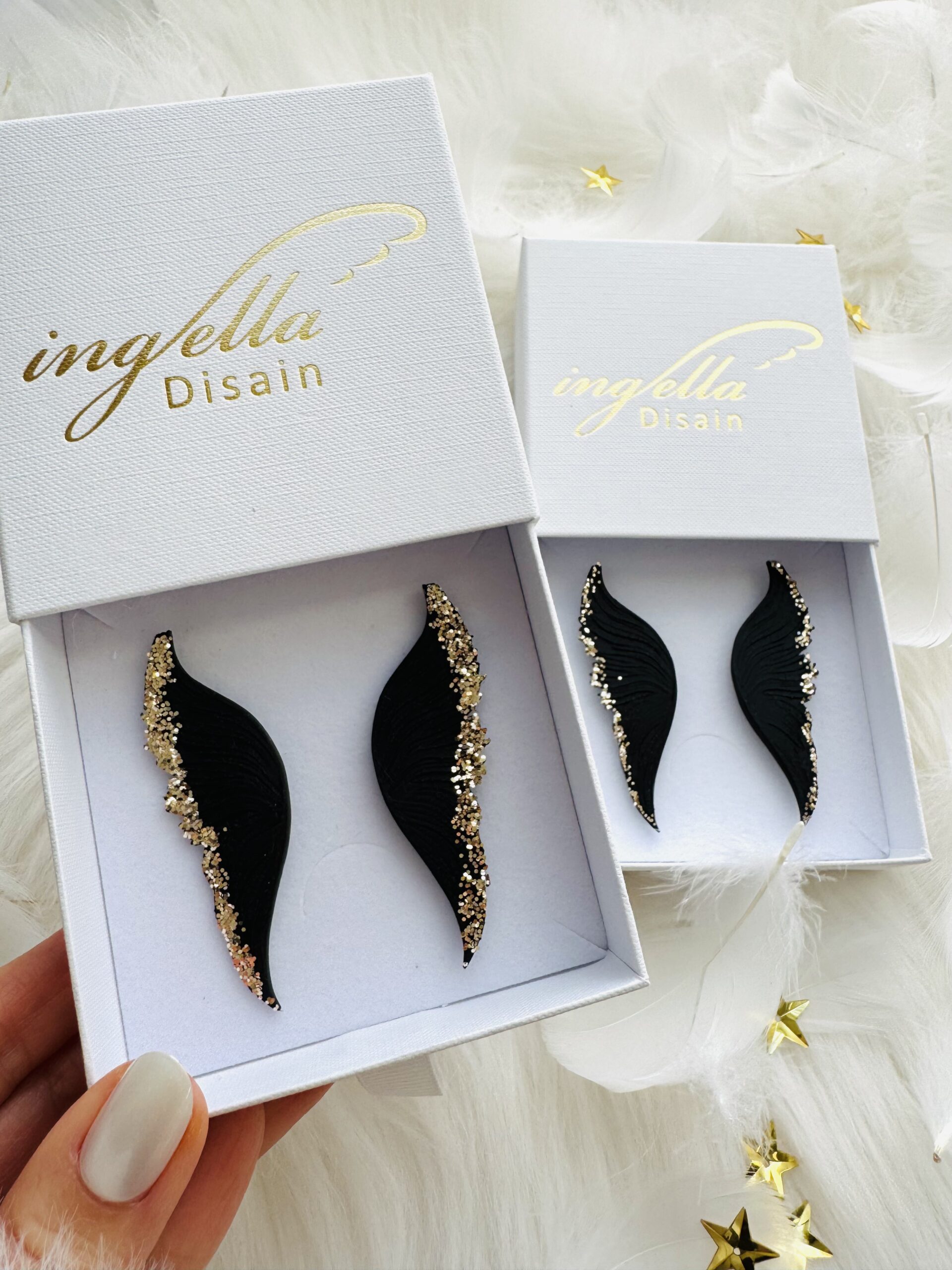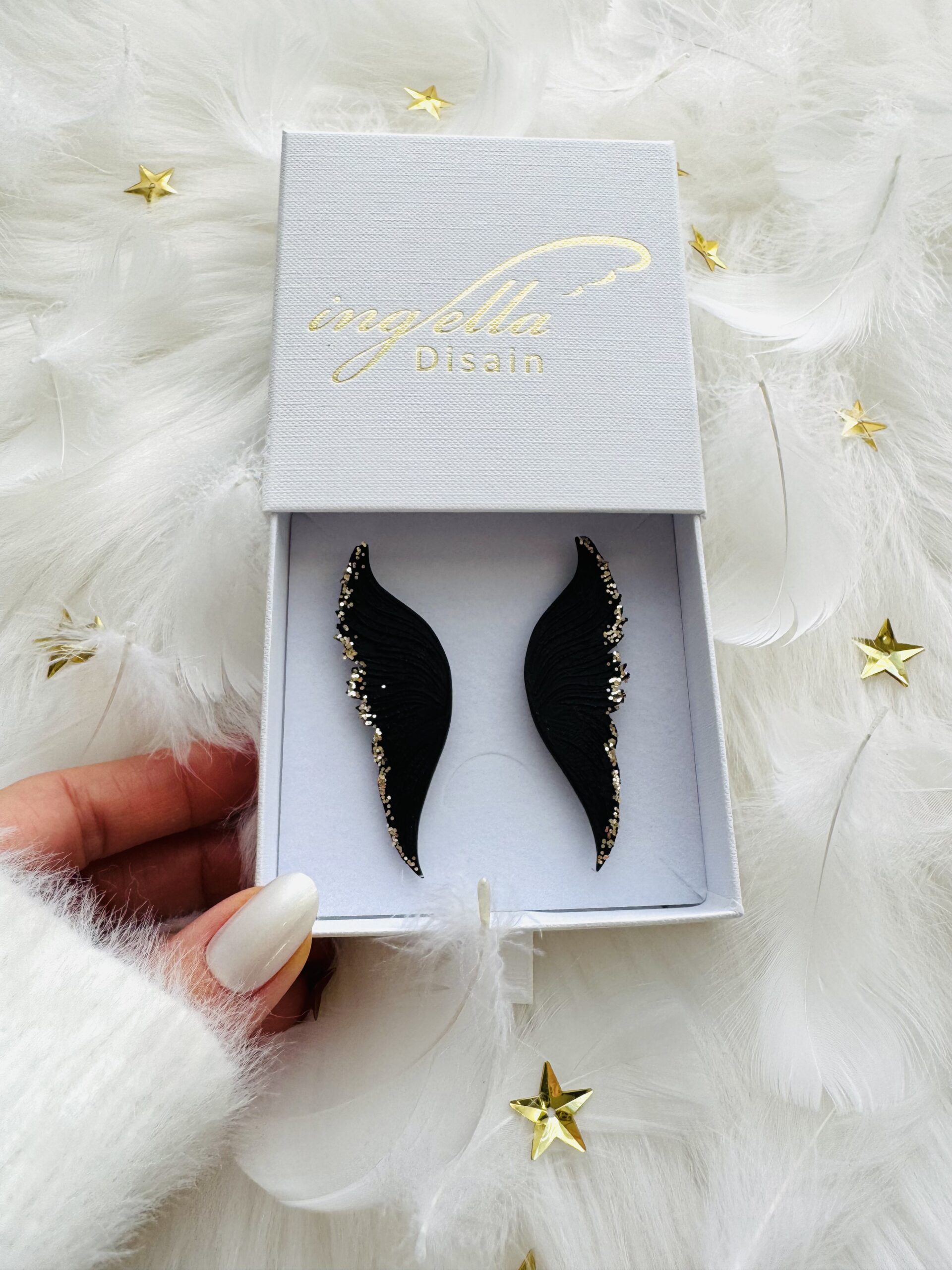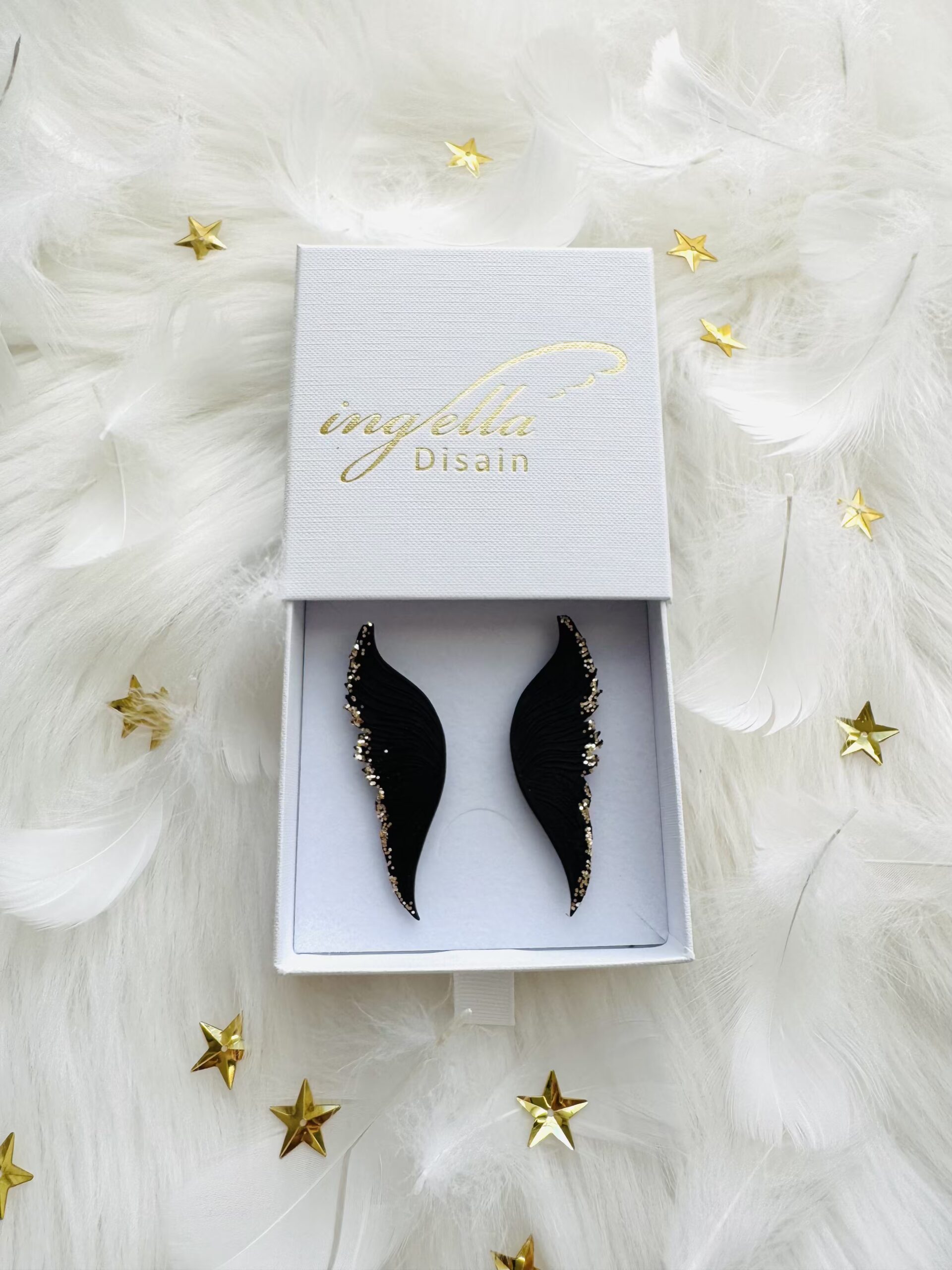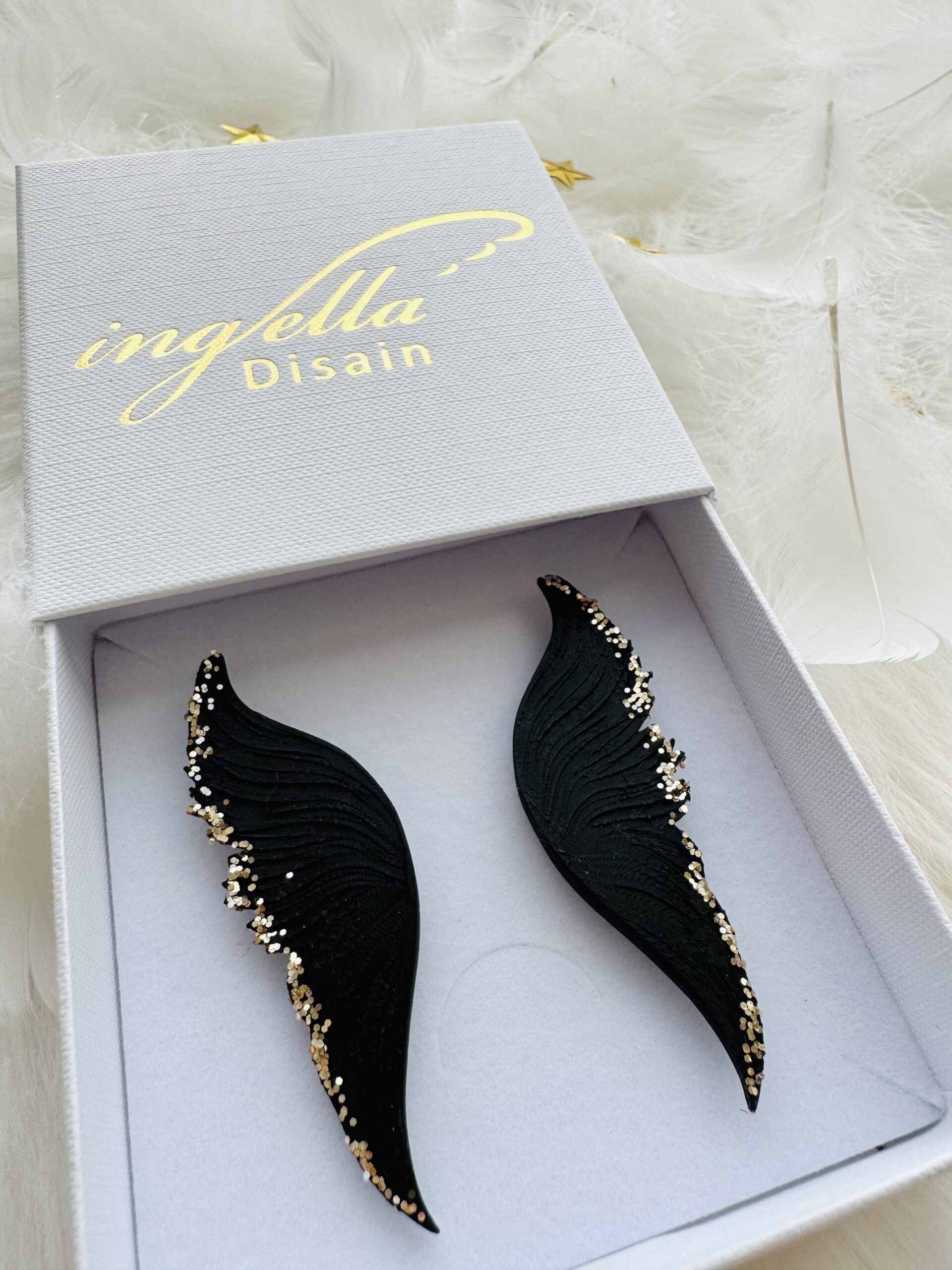 Kõrvarõngad kaitsvad inglitiivad (M-keskmine suurus, mattmust+kuldne sädelus äärtes)