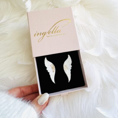 Kaitsvad kõrvarõngad “Valguse Tiivad” (elevandiluu+kuldne sädelus)