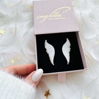 Kaitsvad kõrvarõngad “Valguse Tiivad” (lumivalge+kuldne sädelus)