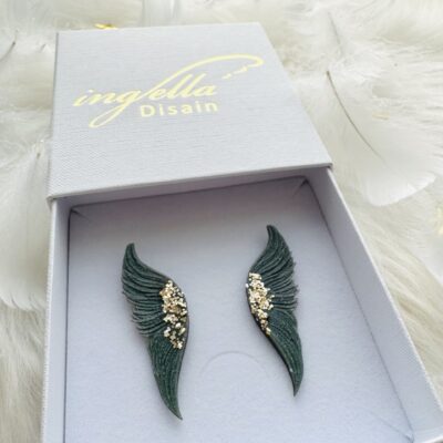 Kõrvarõngad kaitsvad inglitiivad (S-väike suurus, rohekashall+kuldne sädelusega)
